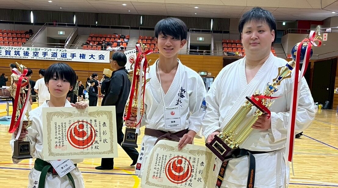 先日開催された「第34回佐賀筑後空手道選手権大会」に、長崎支部から14名の選手が出場しました。